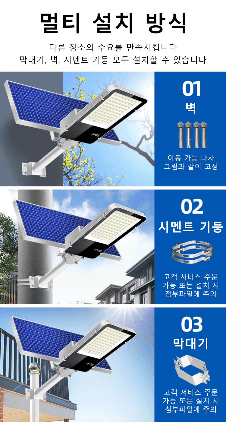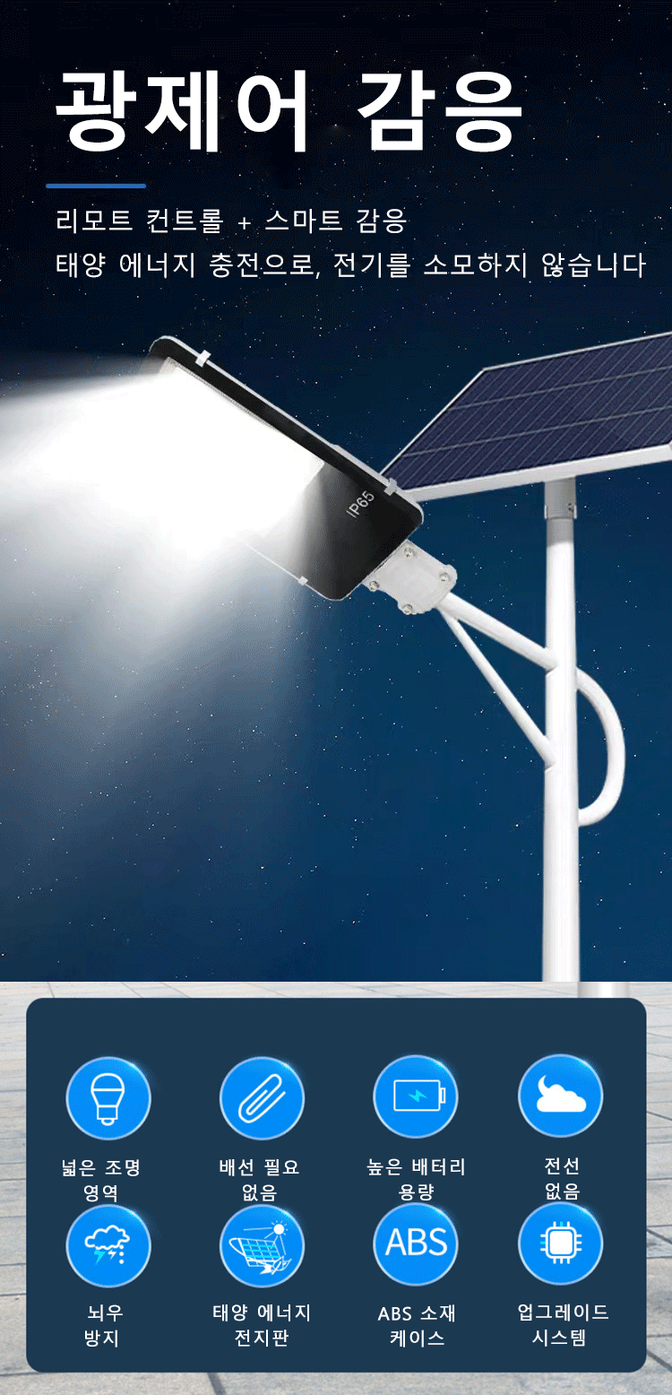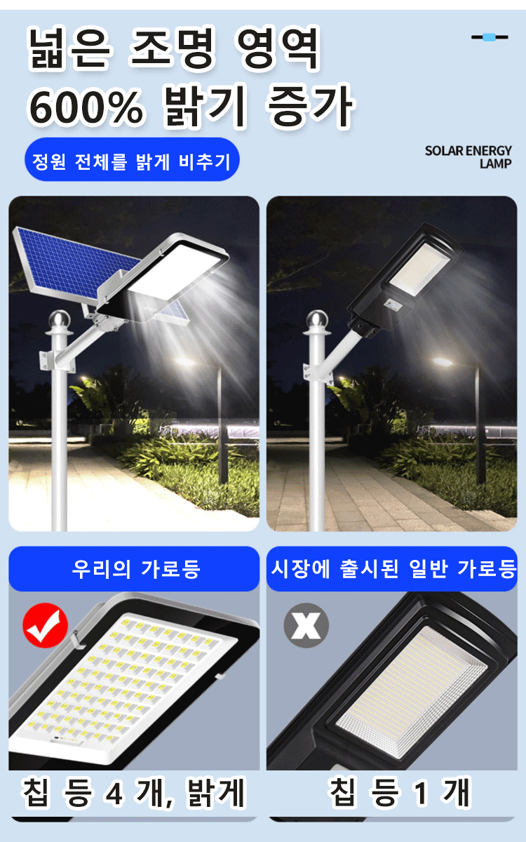 [온 마을길을 밝혀주기] 밝은 라이트 방수 태양광 가로등